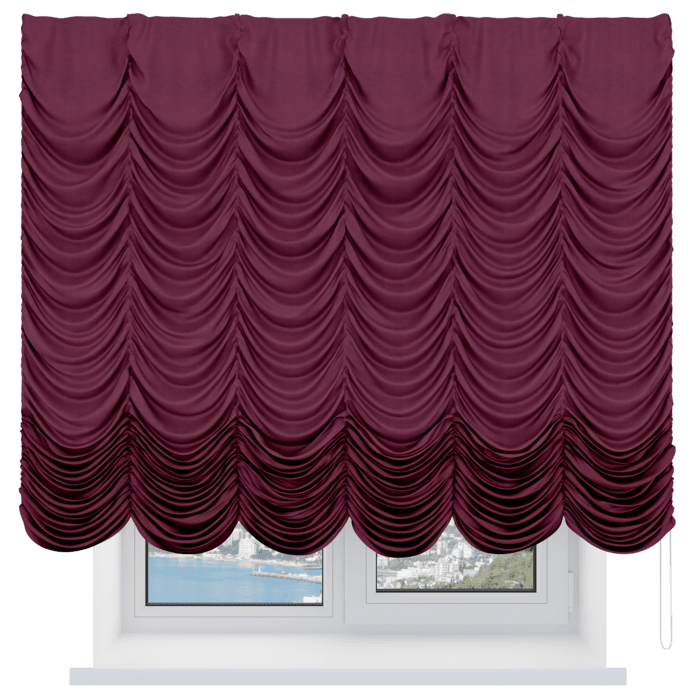 Французская штора вельвет брусничный джем, карниз верёвочный